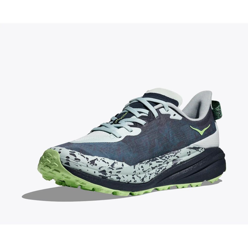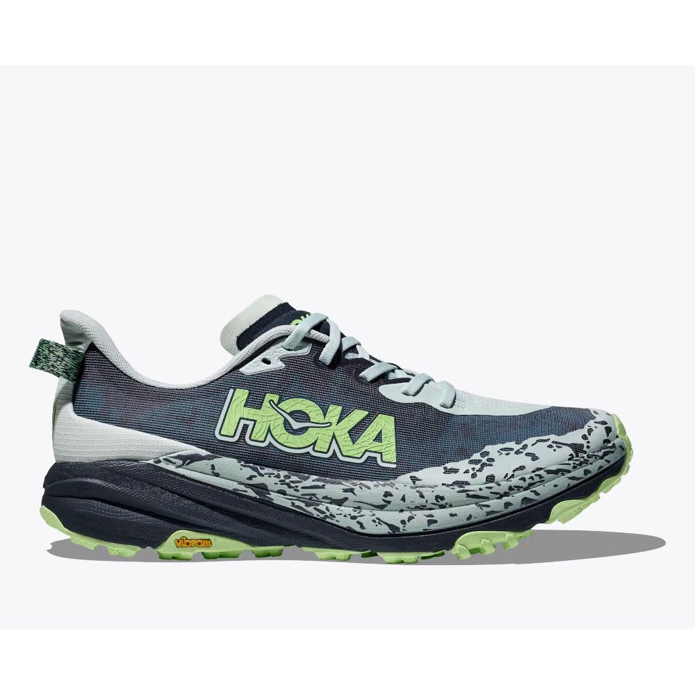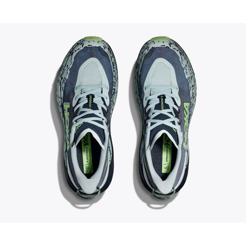 The Speedgoat 6 was born to tame the trail. A workhorse for technical terrain, this recent reissue was refined with a breathable woven textile upper, foot-hugging internal chassis, plusher dual gusset tongue, and revised lug orientation inspired by the hoof of a goat (what else?)