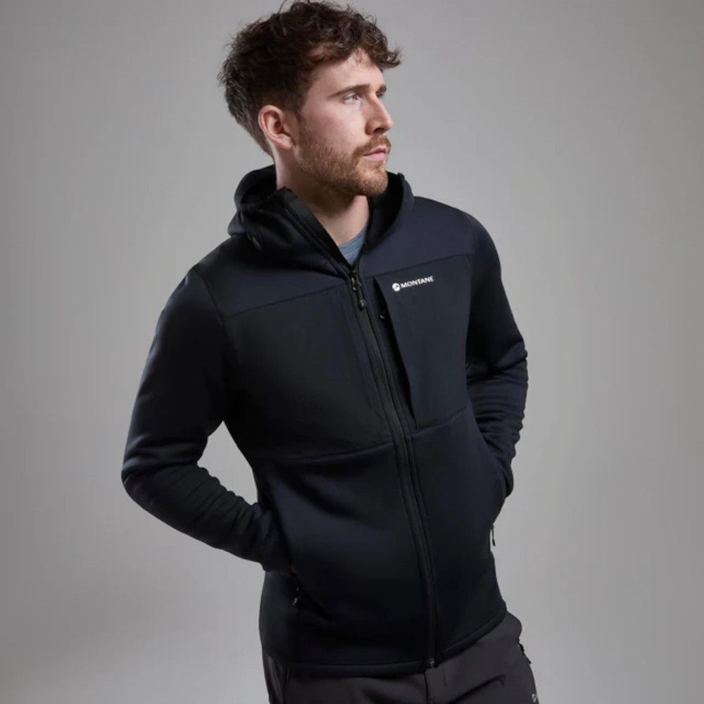 True fast and light performance is achieved by the Montane Men’s Fury XT Hooded Fleece Jacket’s technical combination of a durable nylon outer and a hydrophobic inner fleece. Moisture close to the skin is pushed away from the body by the THERMO STRETCH FLEECE, taking excess heat with it, while the hydrophilic outer fabric pulls the moisture through and releases it into the air. This active process works as hard as you do, keeping your body in equilibrium and maximising your efficiency on the hill.