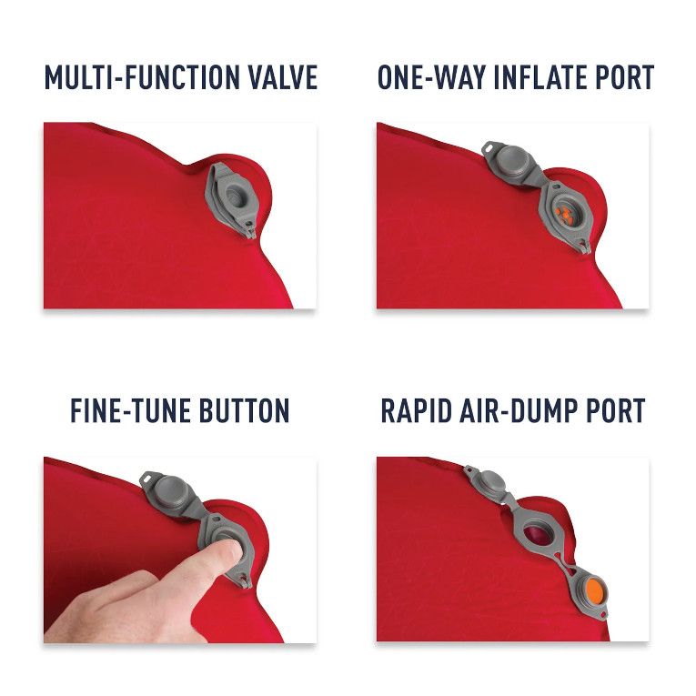 • Flip-over multi-function valve for fast and easy inflation, deflation and fine-tuning of air pressure.