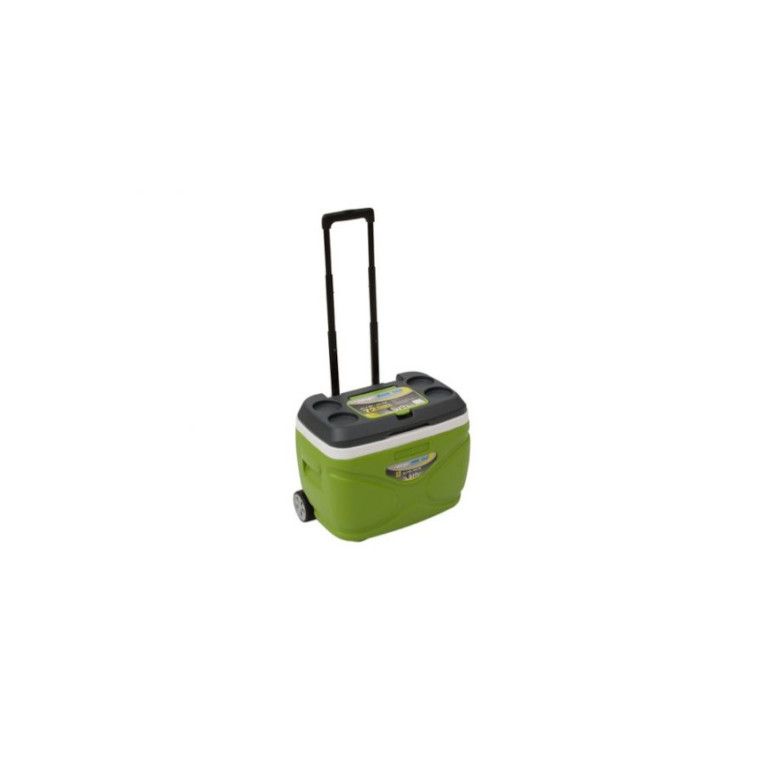 The insulated body with polyurethane foam helps keep food and beverages cold for up to 72 hours. It features a telescopic handle and sturdy wheels for easy transportation.